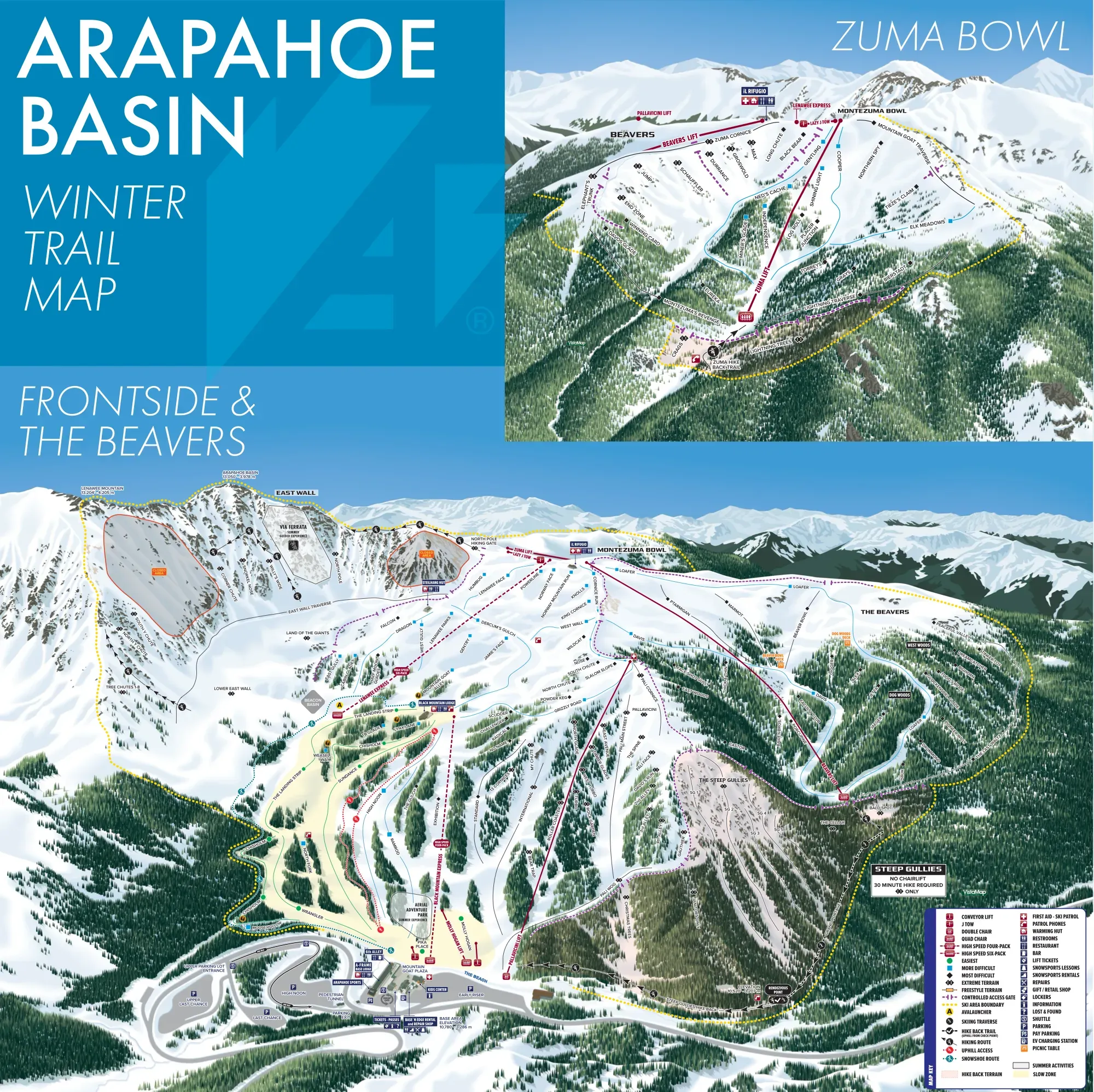 | #6 | Arapahoe Basin arapahoebasin.com | Yes | To Black Mountain Lodge during operating hours. Summit access before 8:30am or after 4pm | $119/season ($39 add-on for A-Basin passholders). Free for Ikon passholders | View | Map | |