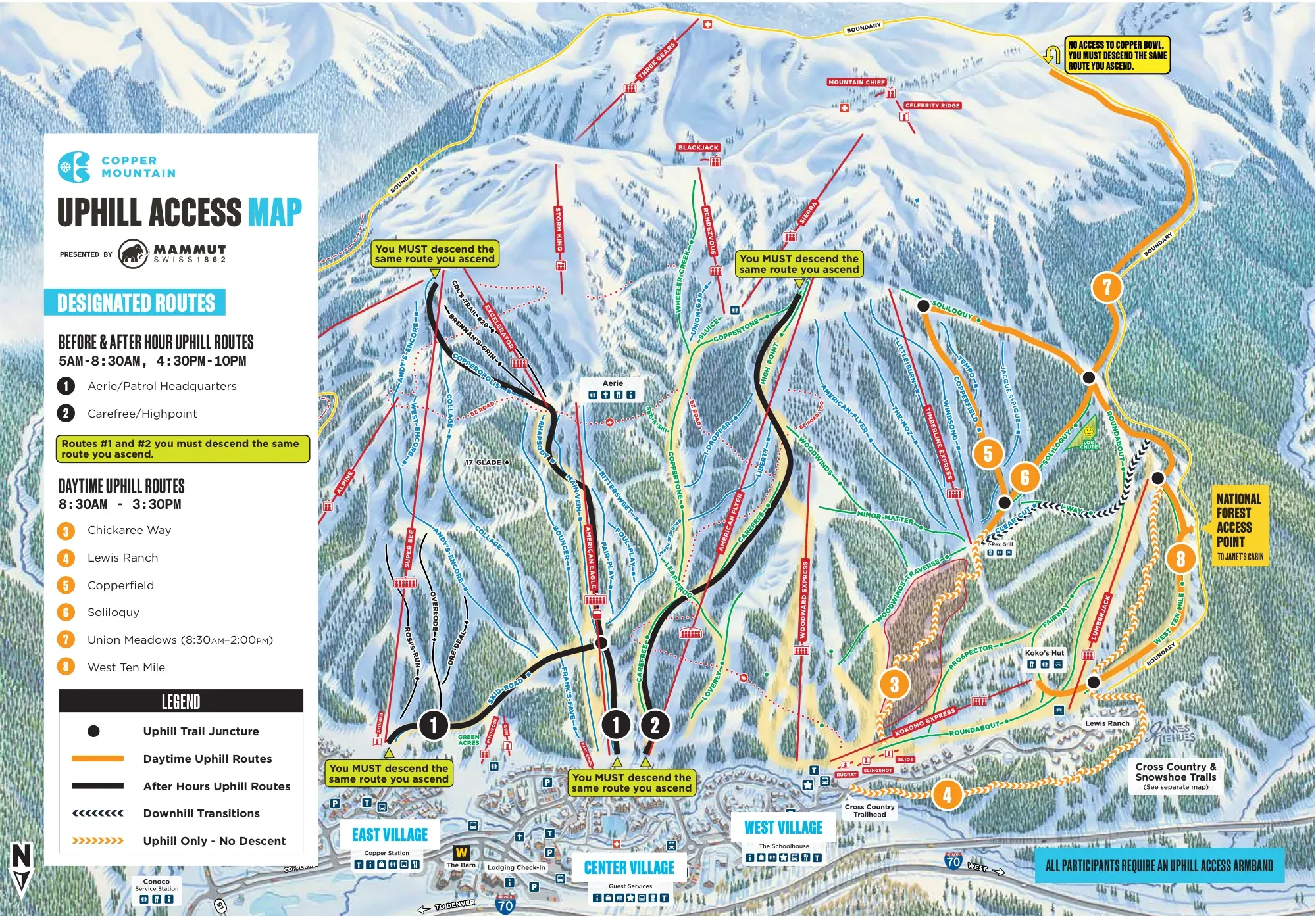 Uphill Access Policy Guide for the 2025-2026 Season at Colorado ski resorts