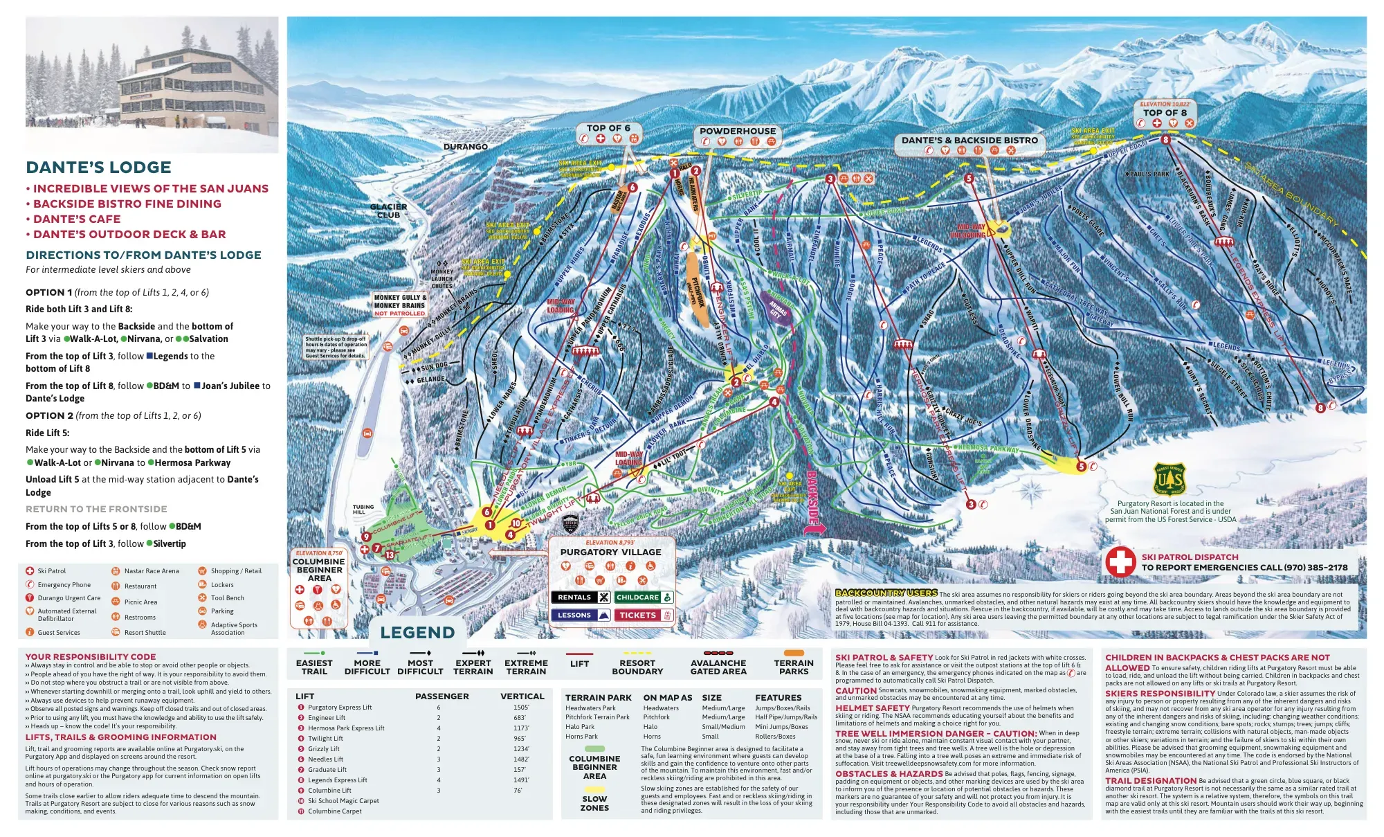 | #24 | Purgatory purgatory.ski | Independent | No | Not permitted on resort. Access backcountry via USFS Road 578 (Hermosa Park Road) | N/A - Uphill access not permitted | View | Map |